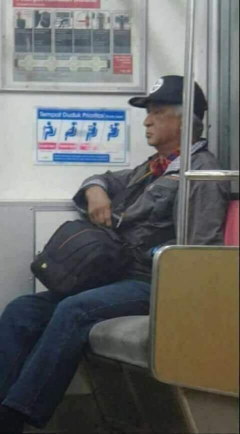 Di dalam postingannya, Arbain Rambey mengunggah sebuah foto lelaki tua yang sedang duduk di dalam kereta seperti tertidur.