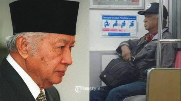Terlihat sosok tua itu sangat familiar dengan kepala negara di masa lalu, bahkan foto seorang kakek yang sangat mirip dengan Suharto ini telah menjadi viral dan banyak di coment di medsos oleh orang yang dekat dengan Suharto maupun khalayak umum, terlihat kakek tersebut mengenakan jaket berwarna abu-abu dengan kepala ditutupi topi hitam, wajahnya terlihat memandang kosong di sebuah KRL. Dirinya terlihat sangat tenang duduk di kursi prioritas Kereta Rel Listrik (KRL) Commuter Line dengan memangku tas hitam.