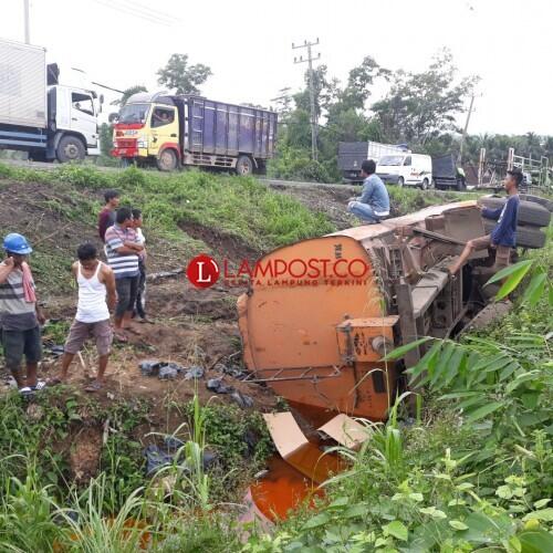 Berdasarkan informasi yang dihimpun lampost.co di lokasidengan plat BG 8890 UH itu terguling pada Jumat (25/5) sekitar pukul 23.00 WIB.