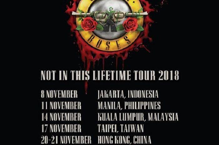 Kabar soal konser band dengan lagu Sweet Child O'Mine ini sudah ada di situs resminya http://www.gunsnroses.com/tour . Mereka bakal ke Indonesia dalam rangka "Not In This Lifetime Tour 2018". Jakarta sendiri kini jadi salah satuju tujuan konser tersebut di wilayah Asia sebagai tur lanjutan.