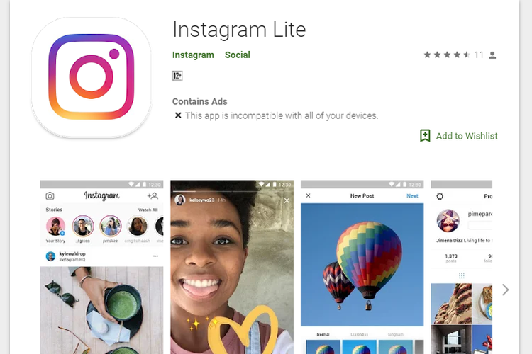 Kompas - Instagram diam-diam merilis Instagram Lite di Google Play Store tanpa ada pengumuman resmi. Seperti aplikasi berformat "Lite" lainnya, Instagram Lite membawa ukuran lebih ringan dibanding aplikasi utama. "Aplikasi Instagram Lite berukuran kecil, memungkinkan Anda menghemat ruang (penyimpanan) di ponsel dan mengunduhnya lebih cepat", begitu deskripsi aplikasi Instagram Lite di Play Store. Dituliskan jika Instagram Lite hanya berukuran 573 kilobyte, atau 1/55 dari aplikasi utama Instagram yang berukuran 32 megabyte.
