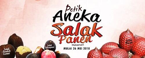 Bulan juni 2018 aneka Buah Salak di Taman Buah Mekarsari sedang memasuki masa panen raya, dimana mereka mengadakan paket wisata yang mengadakan kegiatan memetik berbagai jenis buah salak yang terdapat ditaman buah mekarsari, berbagai aneka buah dapat dipetik dan panen sendiri oleh pengunjung, selain itu akan ada aktivitas perontokan duri buah salak yang dipanen di pandu oleh tim ahli Taman Buah Mekarsari yang sarat akan edukasi dan pembelajaran, baik untuk pembelajaran anak atau sekolah tentang budidaya buah salak, selain itu bisa konsultasi dan bertanya langsung tentang bagaimana budidaya kebun salak koleksi Taman Buah Mekarsari, Petik Aneka salak ini dimulai pada tanggal 26 Mei 2018.