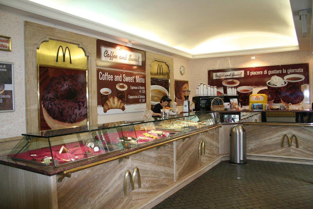 Layaknya restoran bintang lima, ini merupakan outlet McDonalds termewah di dunia yang berada di Roma, Italia. Lokasinya merupakan kompleks bersejarah dengan interior klasik yang tetap dipertahankan. Berbeda dengan counter pemesanan restoran tepat saji biasa, gerai di sini terkesan seperti tempat display perhiasan dengan meja dan kotak kaca. Bahkan di dalamnya terdapat air mancur buatan, patung, tiang, dan dinding marmer lho.
