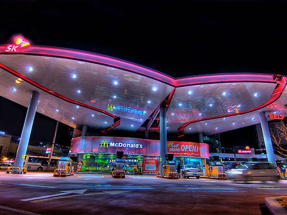Gerai McDonald's yang ada di Ulsan, Korea Selatan, ini bergaya ke-Barat-baratan dengan lokasi yang menjadi satu dengan SPBU. Daya tariknya tentu ada pada atapnya yang berbentuk kupu-kupu dan didominasi warna serta lampu neon. Saat malam, tempat ini akan terlihat seperti robot kupu-kupu cantik yang akan terbang.