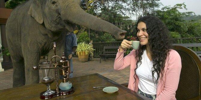 Kalau Indonesia punya kopi luwak, Thailand punya kopi Black Ivory. Serbuk kopi ini juga diolah dari biji kopi yang dikeluarkan saluran ekskresi binatang, tepatnya gajah Thailand. Dilansir CNNGO, Black Ivory memiliki rasa yang tak terlalu pahit, karena protein di dalam kopi sudah dicerna oleh enzim di dalam usus gajah.