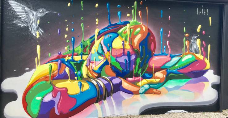 Ada banyak karya seni yang luar biasa karena kemampuan si seniman menggunakan efek hitam putih yang sesuai. Desain grafiti yang terdapat di Miami ini memadukan banyak tetes warna yang tersaji digambar hitam putih.