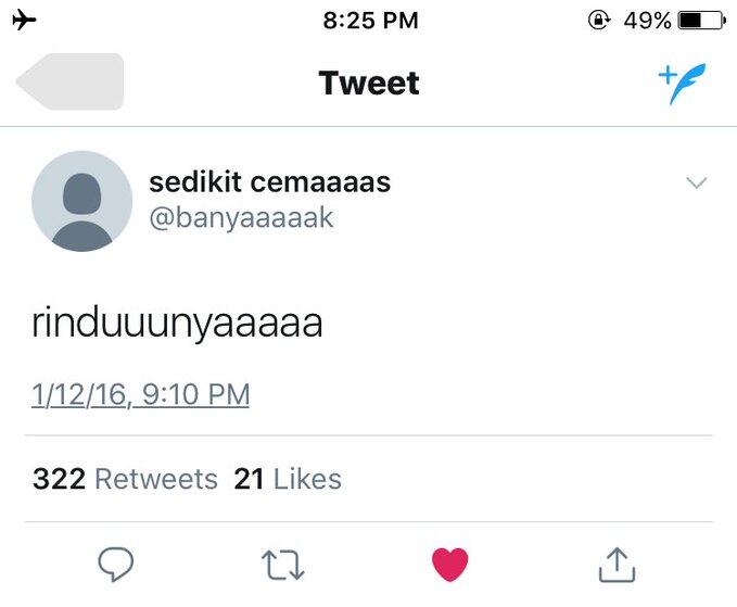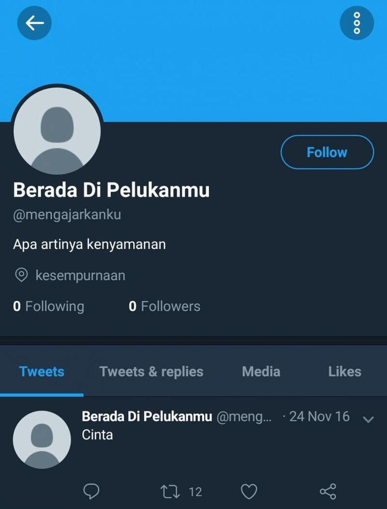 Nah, saking kreatifnya penggunan Twitter, banyak juga orang-orang yang membuat username dan bionya dari potongan lirik lagu. Alhasil yang baca jadi ikutan nyanyi. Hmm, biar nggak penasaran, berikut Di lansir dari Twitter, nama-nama akun ala lirik lagu, kocak abis!