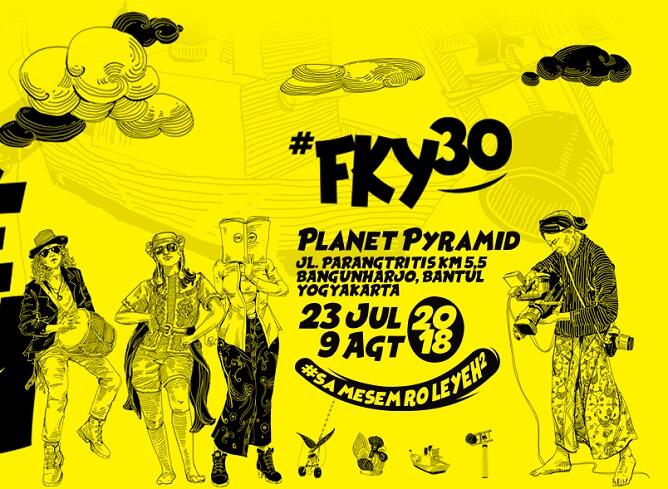 Ajang tahunan yang dinanti-nantikan oleh warga Yogyakarta dan sekitarnya akan segera tiba. Festival Kesenian Yogyakarta (FKY) siap menyapa anda pada tanggal 23 Juli hingga 9 Agustus 2018. Festival Kesenian Yogyakarta (FKY) tahun ini akan diselenggarakan untuk ke 30 kalinya, dan akan diadakan kembali di Planet Pyramid yang berlokasi di Jalan Parangtritis Km. 5,5 Bangunharjo, Bantul. Untuk tahun 2018 ini Festival Kesenian Yogyakarta (FKY) 30 mengambil tema Mesemeleh, merupakan diambil dari dua kata yaitu Mesem dan Semeleh, dalam bahasa Jawa, mesem berarti senyum dan semeleh berarti ikhlas atau nrimo. Semeleh dalam FKY 30 ini dipresentasikan sebagai kedewasaan FKY 30. Sehingga bisa menyajikan hiburan dan kesenian yang menarik, edukatif serta mengikuti perkembangan zaman.