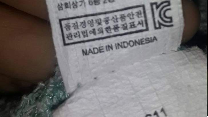 Dan pastinya baju ini tidaklah murah, apalagi dibeli dari negara tetangga jauh. Namun yang bikin pengguna Twitter itu sedikit nyesek adalah ketika ngeliat label pada baju itu. Di dalamnya terdapat tulisan hanggul atau tulisan Korea, namun di bawah tulisan hanggul itu ternyata ada tulisan lain yang bisa bikin siapa saja ngakak, yakni "Made in Indonesia".