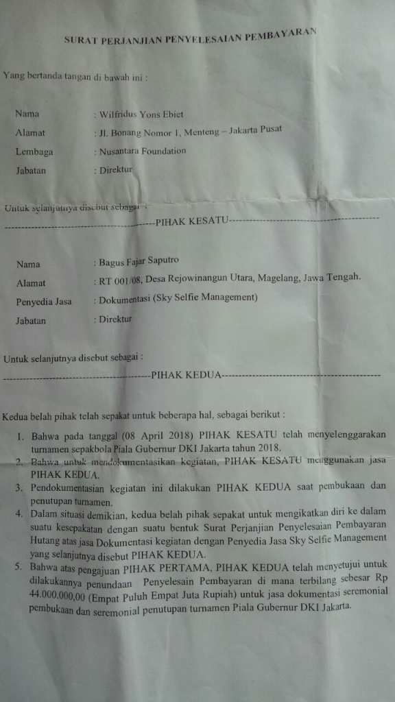 Saya diberikan kontrak kerja dengan nominal 44jt Rupiah dengan batas waktu pembayaran tanggal 27 mei 2018. Namun sampai hari ini Pemprov belum juga memberikan hak kami, sampai harus mengemis2 padahal kami hanya meminta uang kami sendiri.