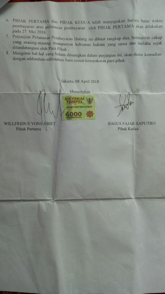 Diberi janji tanggal 27 mei, mundur ke 1 juni , mundur lagi ke bulan juli, sampai hari ini diundur lagi oleh yg bersangkutan