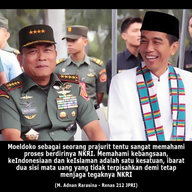 Moeldoko akan senantiasa berdiri di antara dua pilar penting, yakni menjaga tegaknya NKRI dan mengayomi umat Islam sebagai bagian penting dari perjalanan sejarah NKRI bersama elemen bangsa lainnya.Karena Moeldoko juga swbagai Ketua HKTI yang membangun petani Indonesia akan semakin dicintai rakyat.