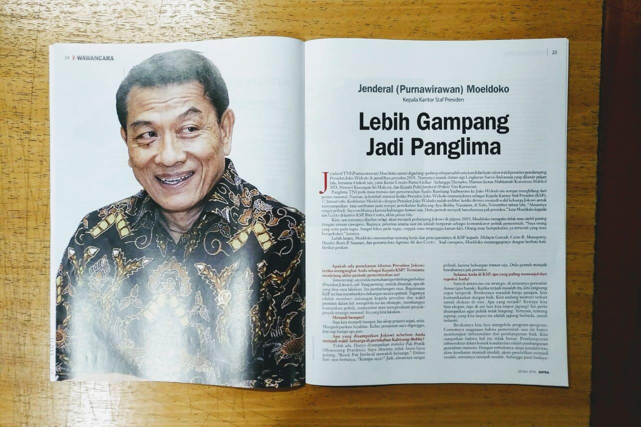 Liputan lengkap wawancara ini dapat Anda lihat pada Majalah Gatra edisi 38, terbitan 19 – 25 Juli 2018. Atau bisa juga mengunjungi tautan berikut: https://www.gatra.com/rubrik/majalah...-Jadi-Panglima