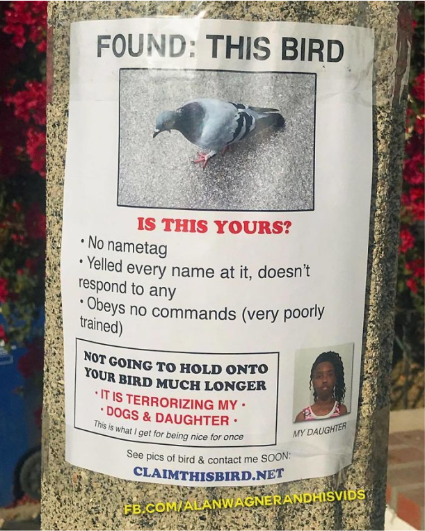 Jadi, kira-kira itu burung agan kah? Karena jika iya, si burung nakal ini udah bikin onar dengan meneror anak plus anjing si empunya poster. Buat agan yang punya, burung ini punya ciri-ciri yang sangat jelas seperti tidak bernama, selalu berteriak, dan tidak patuh pada perintah manusia. Eh tapi kalo gini yang gak bener si penemu burung apa burung daranya ya?