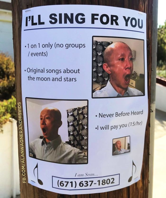 Di negara kita yang tercinta Indonesia, poster menjadi salah satu media informasi yang sangat masif untuk menyebarkan sebuah informasi pada masyarakat. Konser musik, pameran kesenian, acara tradisional, hingga acara-acara keagamaan menggunakan media informasi satu ini. Meskipun banyak orang yang kadang menyepelekannya, karena kadang merusak pemandangan. Buktinya poster tetap bisa menjadi salah satu alat yang menancapkan ide di masyarakat. Melihat hal ini, seorang seniman jalanan bernama Alan Wagner membuat sebuah karya seni komedi yang kocak banget yang bisa bikin agan geli sendiri ngeliat hasilnya. Sebuah poster palsu, yang dapat menghibur banyak orang. Langsung deh agan liat aja!