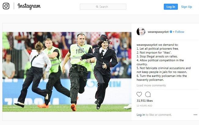 Kelompok aktivis anti-Kremlin ini mengklaim bertanggung jawab atas kejadian beberapa orang yang masuk dan berlarian di lapangan selama pertandingan final Piala Dunia antara Perancis vs. Kroasia pada hari Minggu kemarin.