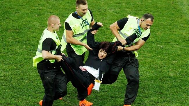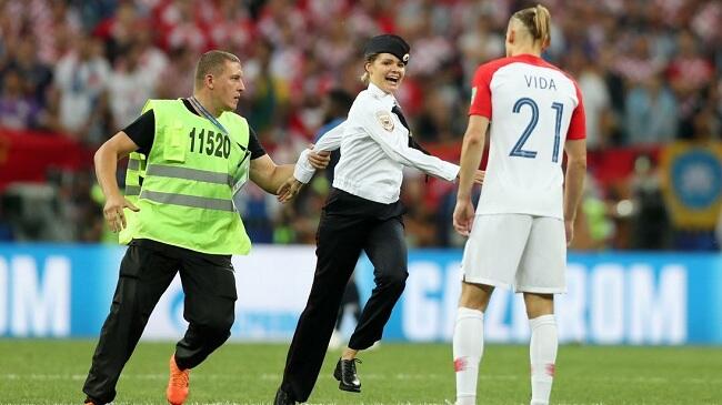 Kalo kemarin nonton pertandingan final Piala Dunia 2018 antara Perancis vs. Kroasia pasti kalian lihat ada beberapa penyusup yang berhasil masuk ke lapangan pertandingan dan membuat pertandingan berhenti beberapa saat.