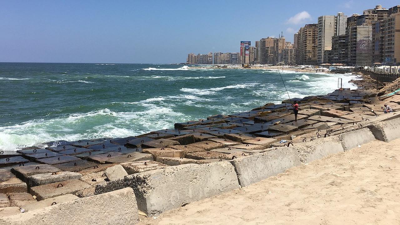 Di Corniche Alexandria, gelombang air laut perlahan-lahan naik di garis pantai. Tentu kondisi ini mengancam kota bersejarah itu. IPCC melaporkan bahwa pantai-pantai di sekitar Alexandria akan tenggelam bahkan dengan kenaikan permukaan laut 0,5 meter, sementara 8 juta orang akan mengungsi akibat banjir di Alexandria.