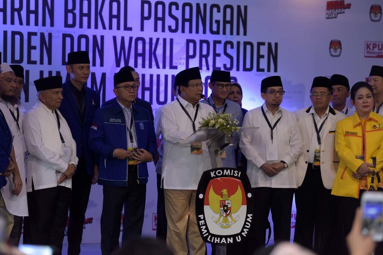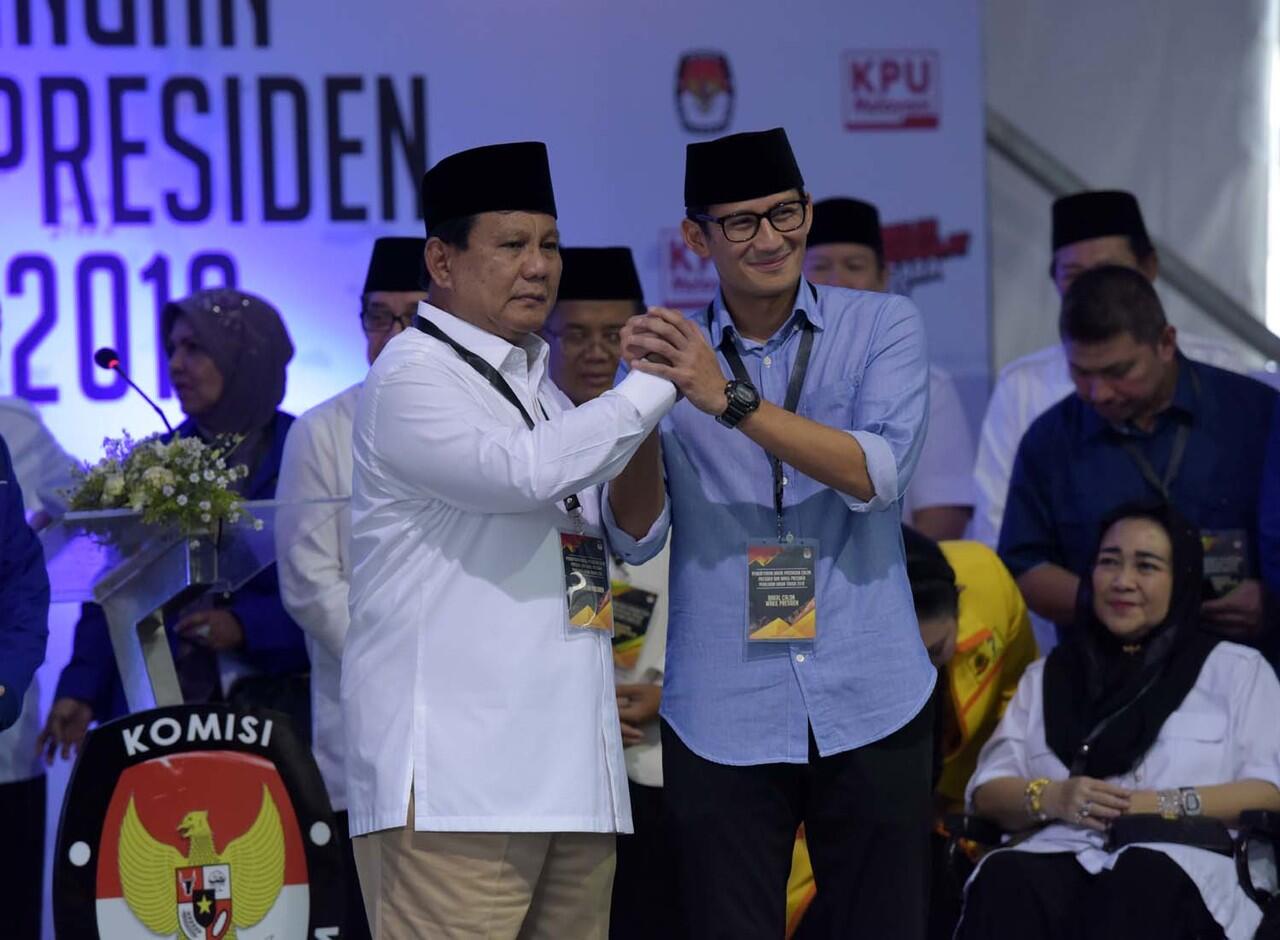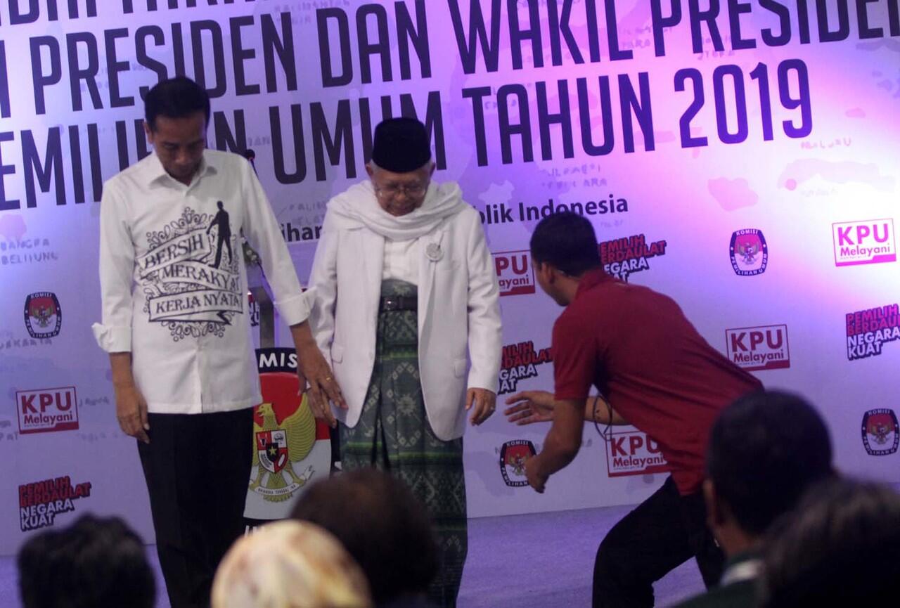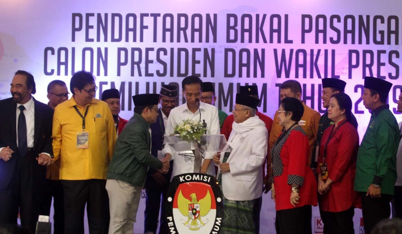 Pada Jumat (10/8) pasangan bakal calon presiden dan wakil presiden Jokowi-Ma'ruf Amin dan Prabowo Subianto-Sandiaga Uno mendaftarkan diri sebagai capres dan cawapres di kantor Komisi Pemilihan Umum (KPU), Menteng, Jakarta Pusat. Keduanya datang terpisah. Jokowi di pagi hari sekitar pukul 09.00 WIB sedangkan Prabowo sekitar pukul 13.30 WIB.