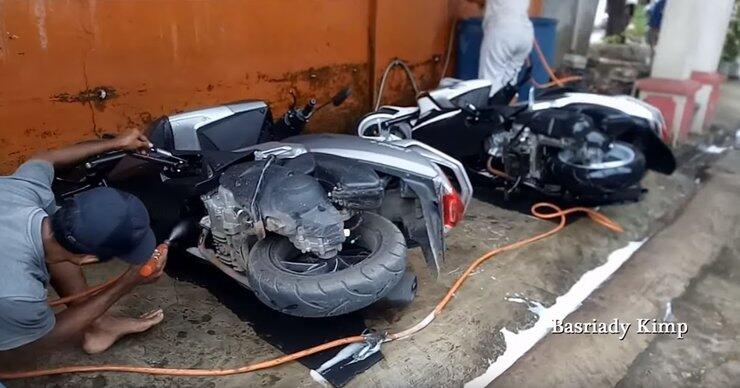 Namun berbeda dari biasanya nih gan, tempat cuci motor yang satu ini gan menawarkan cara mencuci motor yang sangat unik. Bagaimana tidak? Jika biasanya mencuci motor dilakukan dengan posisi motor berdiri, di tempat pencucian ini motor dicuci dalam posisi dirobohkan. Teknik mencuci motor yang unik ini ramai diperbincangkan warganet setelah di unggah akun Instagram @infocegatansukoharjo. Pada video tersebut terlihat dua buah motor yang sedang dicuci dalam posisi dirobohkan. Busyet dah