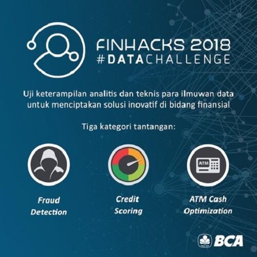 Bagi Kaskuser yang anaknya IT banget, pasti udah pernah dengar tentang Finhacks dong? Yes, Finhacks merupakan sebuah acara kompetisi teknologi yang digelar oleh BCA, dimana para developer atau praktisi TI berkumpul, berkolaborasi dan berinovasi untuk menciptakan solusi inovatif di bidang finansial. Sudah dua tahun berturut-turut Finhacks digelar dan telah menelurkan sederet solusi berupa aplikasi yang diterapkan dalam dunia finansial. Tahun ini untuk pertama kalinya BCA akan menyelenggarakan Finhacks dengan konsep "Data Challenge". Btw nih gan, kenapa yah dipilih konsep "Data Challenge"? Sepertinya bukan rahasia lagi deh gan, kalau jaman sekarang semua berbasis data, bahkan yang namanya kecerdasan buatan pun juga membutuhkan sumber data. Jadi hidup di era digital kayak sekarang ini semua serba data, data, .. dan data! Nah, untuk agan sista yang punya antusiasme tinggi terhadap data pastinya bakal ngerasa terpanggil untuk ambil bagian di ajang Finhacks 2018 #DataChallenge. Lewat kompetisi ini seluruh peserta ditantang untuk berlomba menghasilkan model terbaik untuk bisa memahami lebih jauh mengenai perilaku data yang diamati (descriptive), dan bisa memperkirakan kondisi yang akan terjadi di masa mendatang (predictive) berdasarkan koleksi data yang berhubungan dengan industri finansial. Syarat & Ketentuan Finhacks 2018