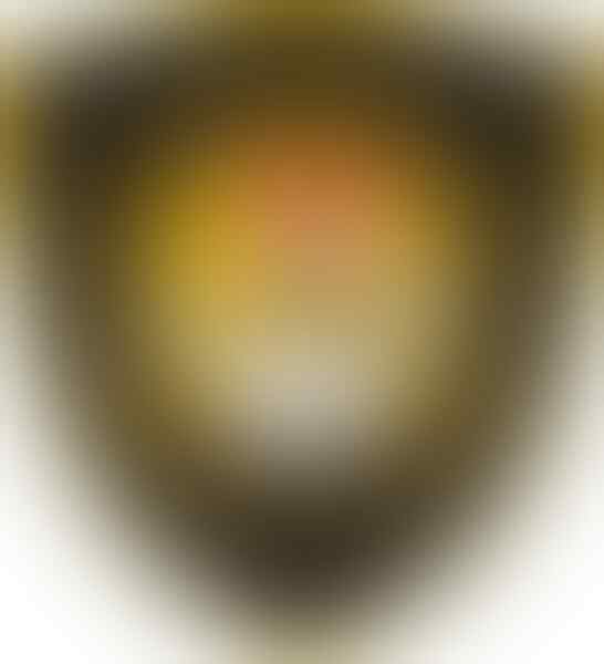 Bentuknya perisai berwarna hitam dengan garis pinggir dan huruf berwarna kuning yang bertuliskan