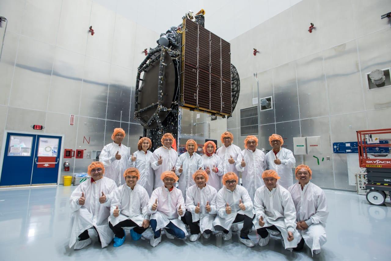 Menteri BUMN RI Rini M. Soemarno dan Direktur Utama PT Telkom Indonesia (Persero) Tbk (Telkom) Alex J. Sinaga meninjau langsung Satelit Merah Putih di SpaceX, Cape Canaveral Air Force Station, Florida, pekan lalu, Selasa (24/7). Peninjauan tersebut dilakukan untuk memastikan bahwa Satelit Merah Putih siap diluncurkan dalam waktu dekat.