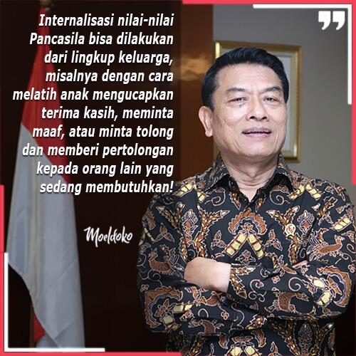 Selama ini, pendekatan indoktrinasi yang sering dilakukan untuk menanamkan nilai-nilai Pancasila di masyarakat. Namun Moeldoko menyatakan hal itu tidak lebih baik dibandingkan dengan ketauladanan.