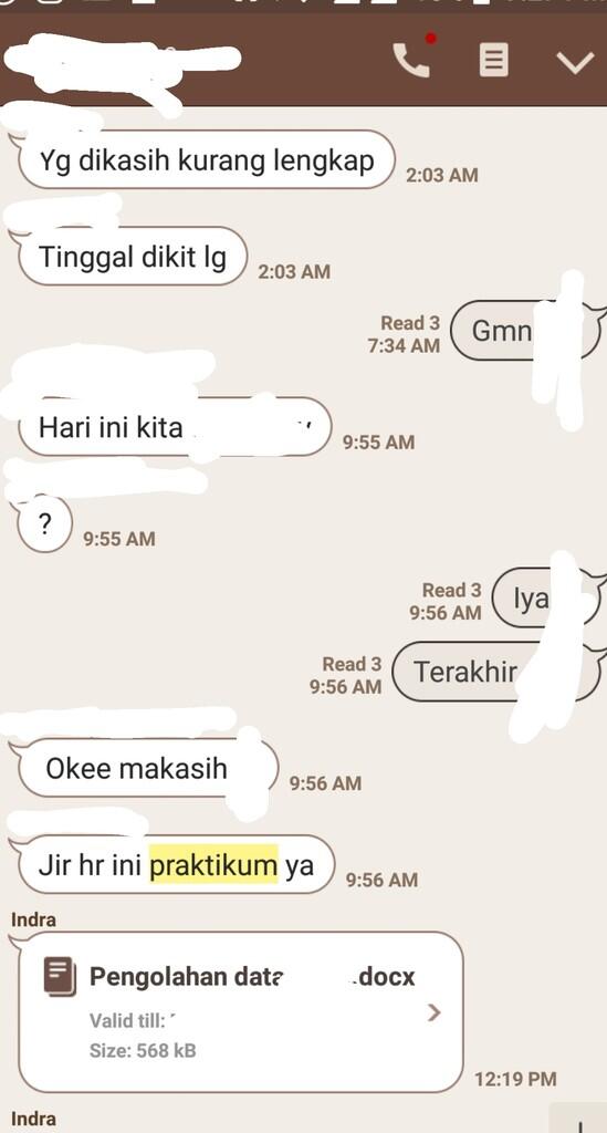 Jujur aja, karena banyaknya sharing files, seperti laporan tahun lalu/senior untuk pembanding, literatur, foto data percobaan, makanya buset dah grup-grup terkait laporan praktikum bisa bikin penuh memori HP! Contohnya salah satu grup gue ini