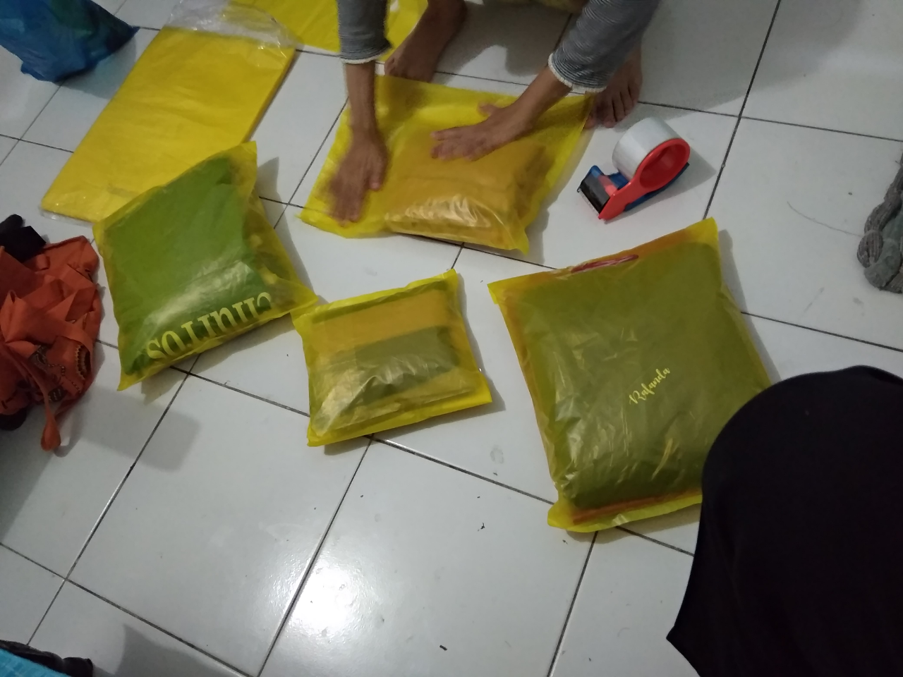 Sudah itu kita packing barangnya kemudian antar ke kurir untuk dikirim ke alamat tujuan. Tidak lupa nomor resinya diberitahukan ke pelanggan.:Yb