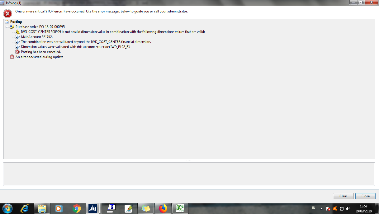 Jadi di kantor ane sistem informasinya pakai Microsoft Dynamics AX 2012. Terkadang apabila user melakukan proses bisnis dan ada yang salah eksekusi maka AX tersebut muncul error. Error tersebut harus diselesaikan kalau tidak maka akan menghambat kegiatan operasional dari user tersebut. Contohnya kayak penampakan di bawah ini gan.