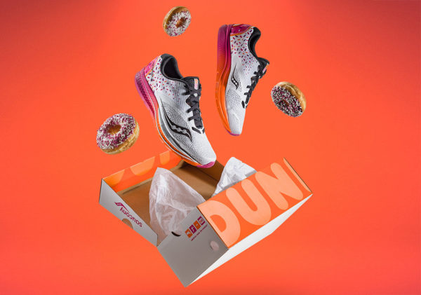 Di bulan maret kemarin, Dunkin' Donuts dan Saucony (produsen sepatu olahraga ) memperkenalkan sebuah sepatu jogging limited-edition yg bernama Saucony X Dunkin' Kinvara 9 dengan fitur sepatu tersebut di masing-masing heel dan Tongue nya memiliki warna dan desain seperti logo Dunkin Donuts