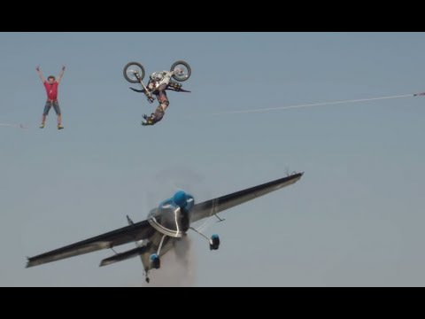 Nah ada lagi juga yang aksi akrobatik random yang keren abis juga nih bre. Lebih menegangkan karena selain ada motocross dan pesawat aerobatik, di TKP yang sama ada juga yang lagi ngelakuin slackline alias jalan di tali.