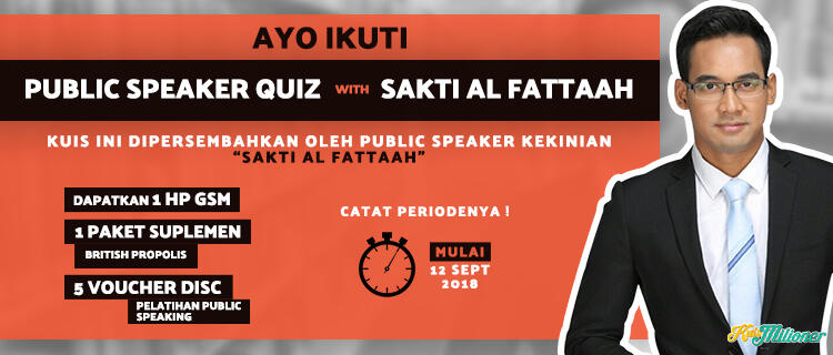 Halo sobat kaskuser, yuk ikutan Public Speaker Quiz with Sakti Al Fattaah di kuismilioner.com