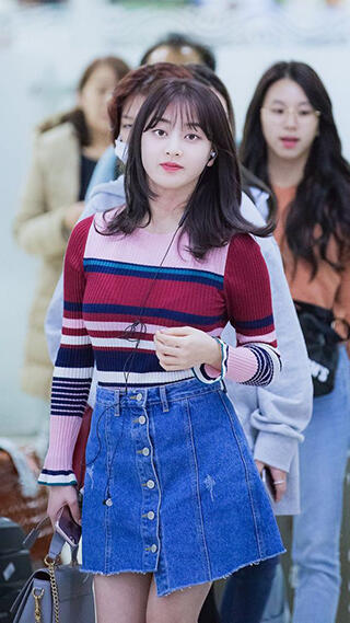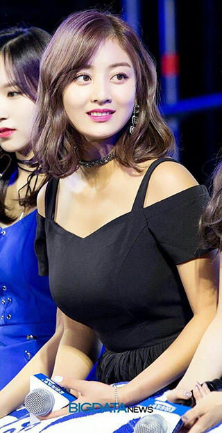 Dengan rambut pendeknya Jihyo bisa memperlihatkan pundaknya yang indah yang memlliki bentuk segitiga.