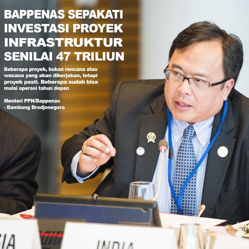 Menteri PPN/Bappenas, Bambang Brodjonegoro mengatakan proyek-proyek tersebut saat ini telah ditandatangani dan sudah memasuki fase finansial closing. Pembiayaan proyek-proyek yang telah ditanda tangani ini mendapat fasilitasi dari Pembiayaan lnvestasl Non Anuaran Pemerintah (PINA) Center for Private Investment atau yang juga dikenal dengan PINA Center Bappenas, entitas di bawah kementerian.