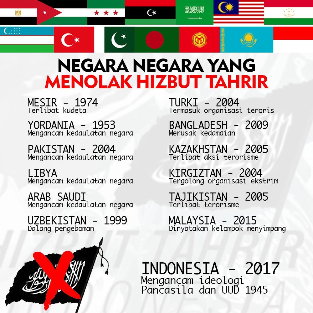 Pemerintah Indonesia resmi membubarkan Hizbut Tahir Indonesia (HTI) seiring dengan pencabutan status badan hukum ormas tersebut oleh Kementerian Hukum dan HAM pada Rabu (19/08) lantaran dianggap bertentangan dengan ideologi Pancasila dan UUD 1945. Tetapi Indonesia bukan satu-satunya negara yang melarang aktivitas organisasi ini.