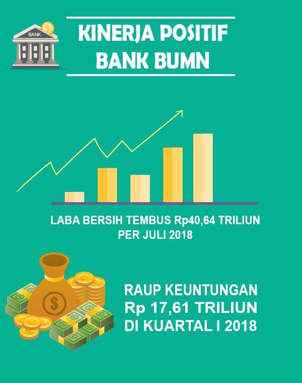 Statistik Perbankan Indonesia (SPI) yang dirilis oleh Otoritas Jasa Keuangan (OJK) mencatatkan total laba bersih empat bank plat merah per Juli 2018 mencapai Rp 40,64 triliun. Realisasi tersebut mengalami pertumbuhan 15,76% secara year on year (yoy) dari posisi Juli 2017 sebesar Rp 35,11 triliun.