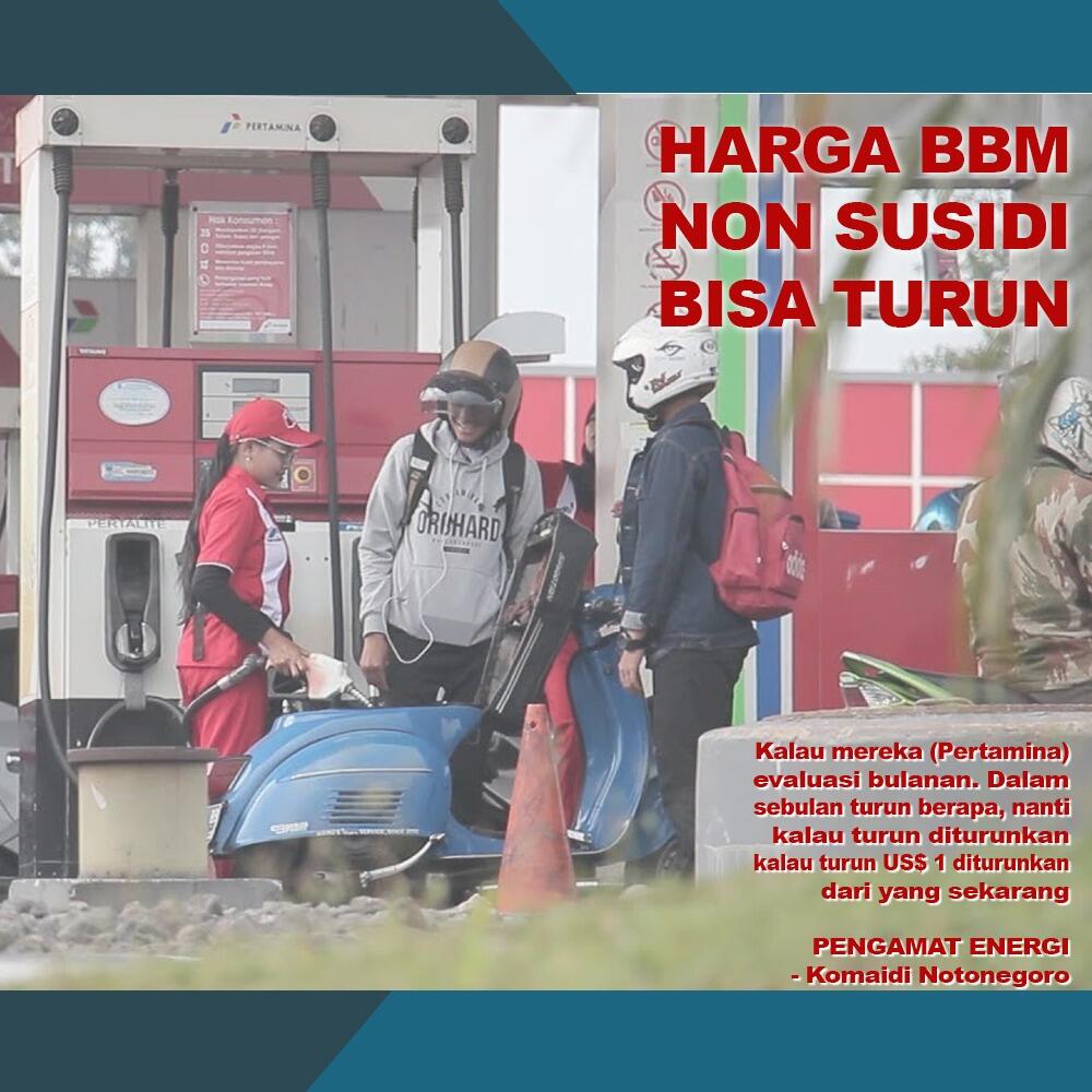 Pengamat Energi Komaidi Notonegoro mengatakan, Pertamina akan melakukan evaluasi secara bulanan. Menurutnya, jika dalam evaluasi Pertamina harga minyak mentah turun, harga Pertamax Cs bisa turun.