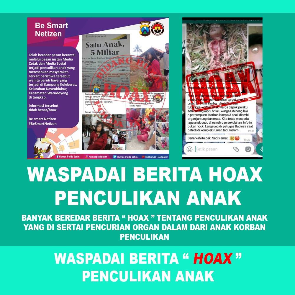 "Kepolisian pastikan informasi penculikan dan penjualan organ tubuh anak-anak yang viral di media sosial adalah hoax. Kapolri Jenderal Tito Karnavian meminta masyarakat untuk tidak termakan isu dan resah terhadap maraknya kabar penculikan anak dan penjualan organ tubuh di media sosial," demikian imbauan yang ditulis melalui postingan di Instagram.