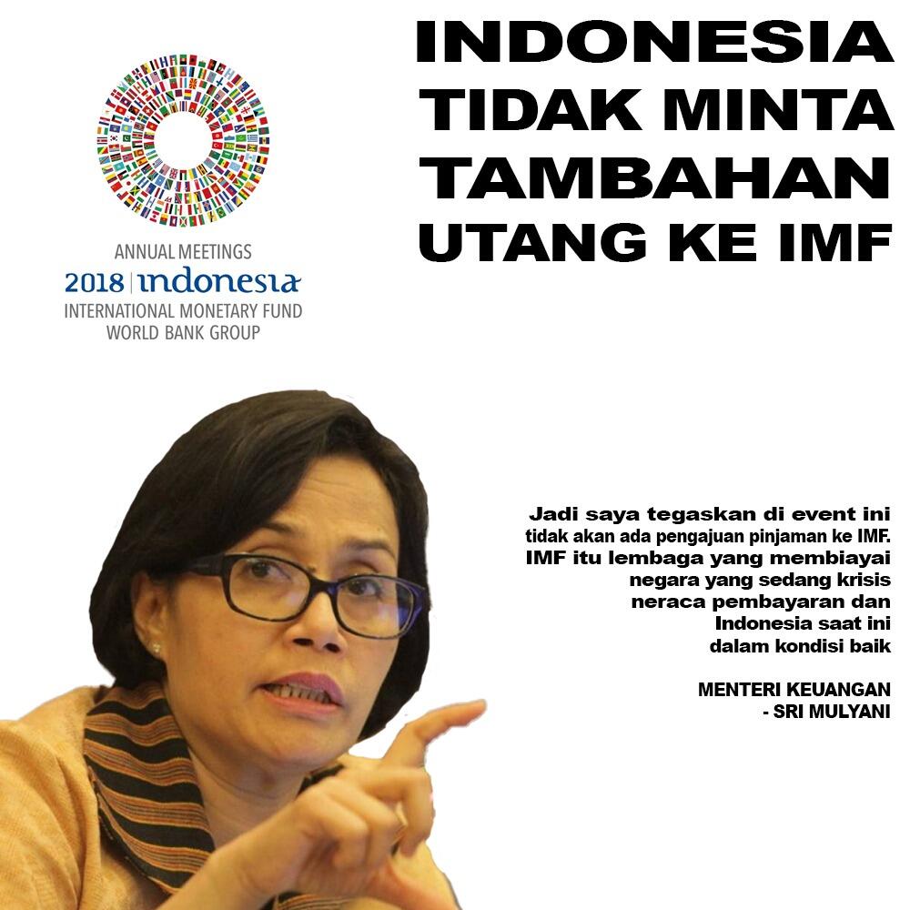 Sejumlah kalangan sempat menyebutkan bahwa kegiatan International Monetaru Fund (IMF) yang berlangsung di Nusa Dua Bali pada 8-14 Oktober 2018 akan dijadikan sebagai sarana menamah pinjaman atau utang negara.