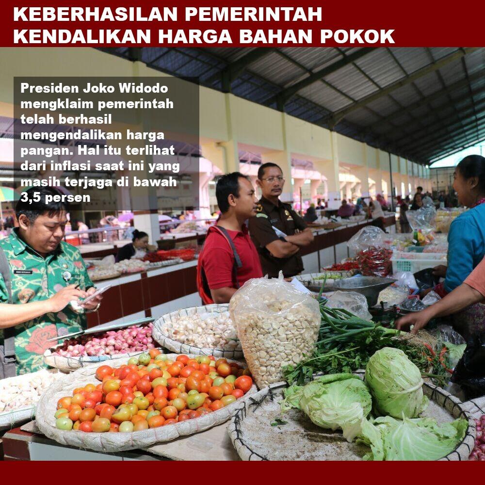 Presiden Jokowi klaim pemerintah telah berhasil mengendalikan harga pangan. Hal tersebut terlihat dari inflasi saat ini yang masih terjaga di bawah 3,5 persen. Maka itu, Jokowi meminta masyarakat agar tidak mudah dipengaruhi terkait harga pangan yang naik.