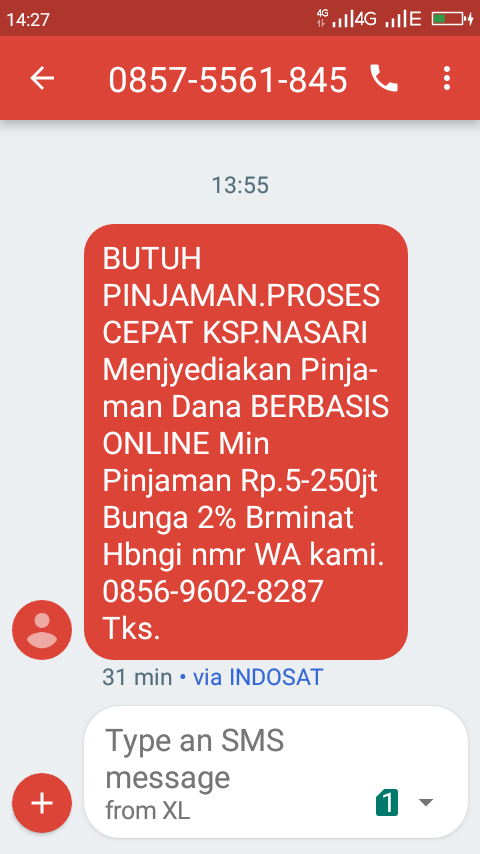 Sms tawaran meminjamkan uang ksp nasari,dll meresahkan saya