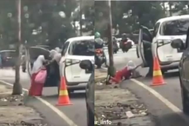 Seorang gadis terekam di dalam video viral bocah SD didorong dari mobil oleh seorang wanita yang berada di dalam mobil yang sama.